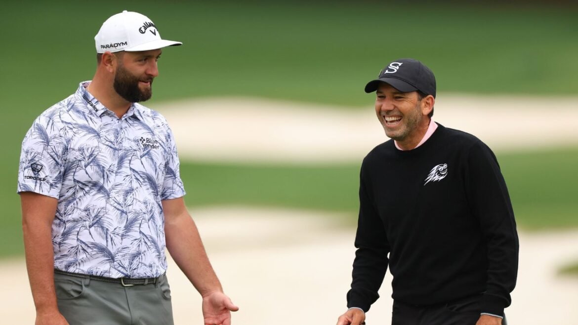 Later on that same hole, things turned comical when Garcia started carrying Rahm’s bag while Rahm’s caddie was tending to a bunker.