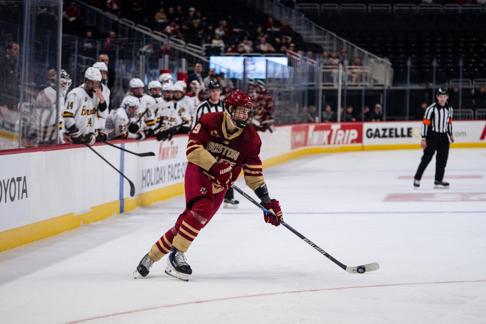 “It’s really impressive how quickly he’s adapted, especially not playing, just practicing, this fall,” Boston College head coach Greg Brown said. “He hadn’t had a game since August, I think, so to adjust that quickly, being the youngest guy on the ice and still mentally sees it at the right speed, which is really impressive. And then physically, he’s not just out there trying to slide by. He’s impacting the game. He’s physical when he can be. He gets on the inside, he protects pucks. Like all those things for a 17-year old are really impressive.”
