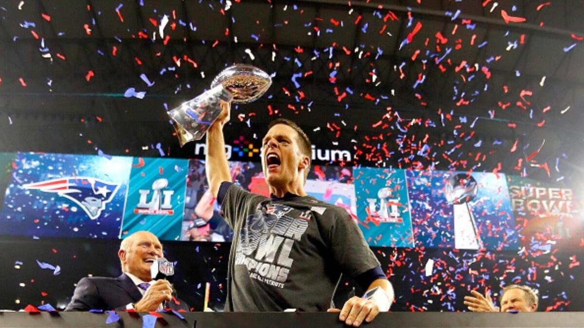 Down 28-3, Brady led the greatest comeback in Super Bowl history. The comeback started with Brady’s touchdown pass to James White. A touchdown pass to Danny Amendola, two two-point conversion completions, and a jaw-dropping completion to Julian Edelman helped force overtime. In overtime, Brady completed five straight passes to set up James White’s game-winning score.